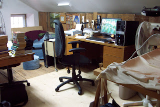 Next year, when the new steel roof goes on, we’re going to have installed two skylights on the south face (my desk faces north at the moment), which will further brighten the space. I think there’s going to be a very ethereal feeling up here when the skylights go in.